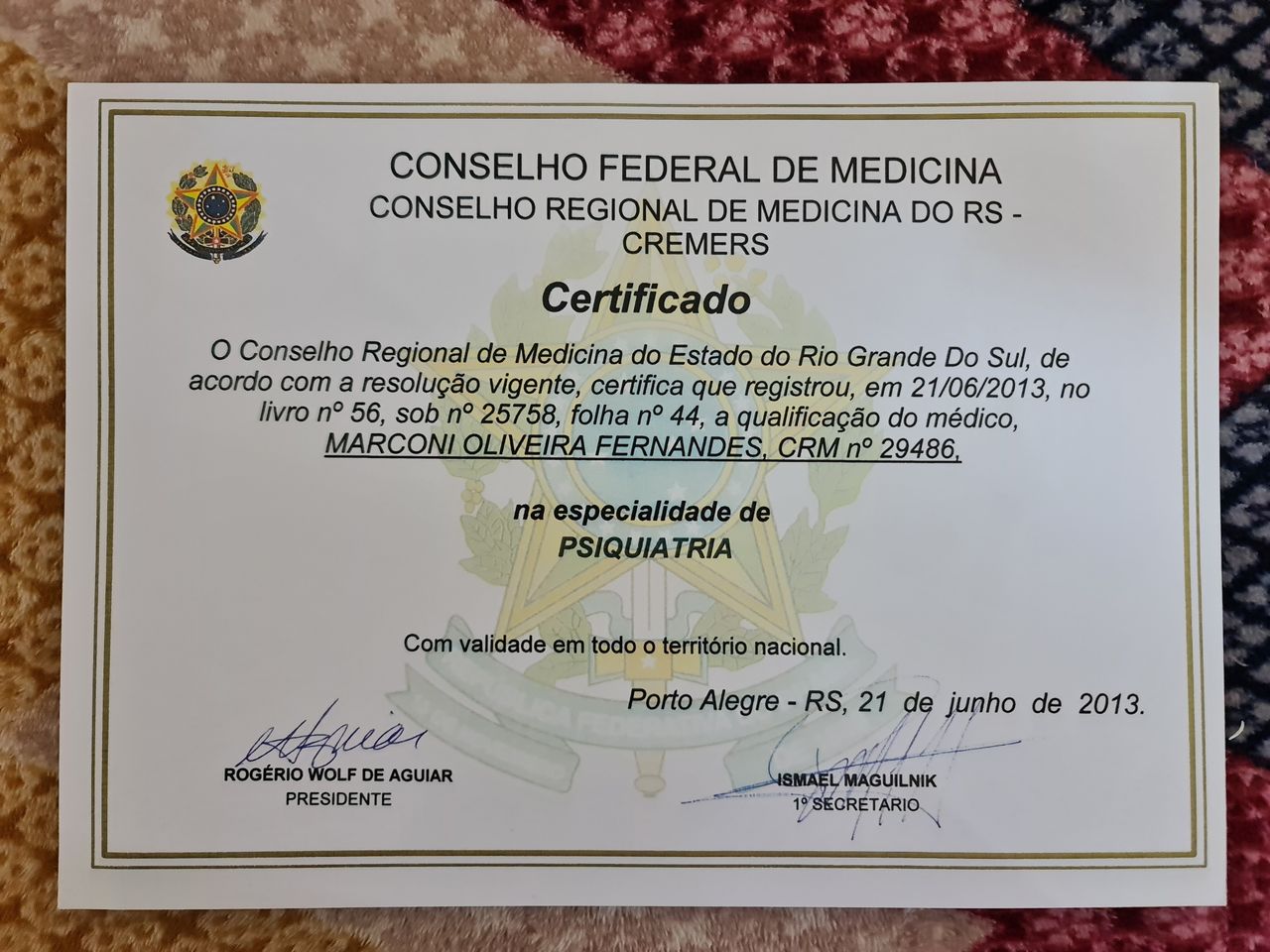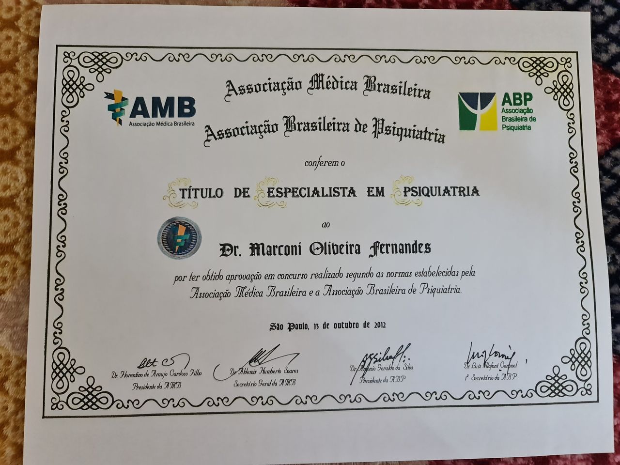 - Titulo de Especialista em Psiquiatria, ASSOCIAÇÃO BRASILEIRA DE PSIQUIATRIA (ABP), 2012, RQE: 25758